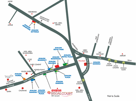 Avalon Regal Court is strategically located on 4 lane mega highway (200 ft wide Alwar bypass road) sector-57 which is in the heart of futuristic city, Bhiwadi.